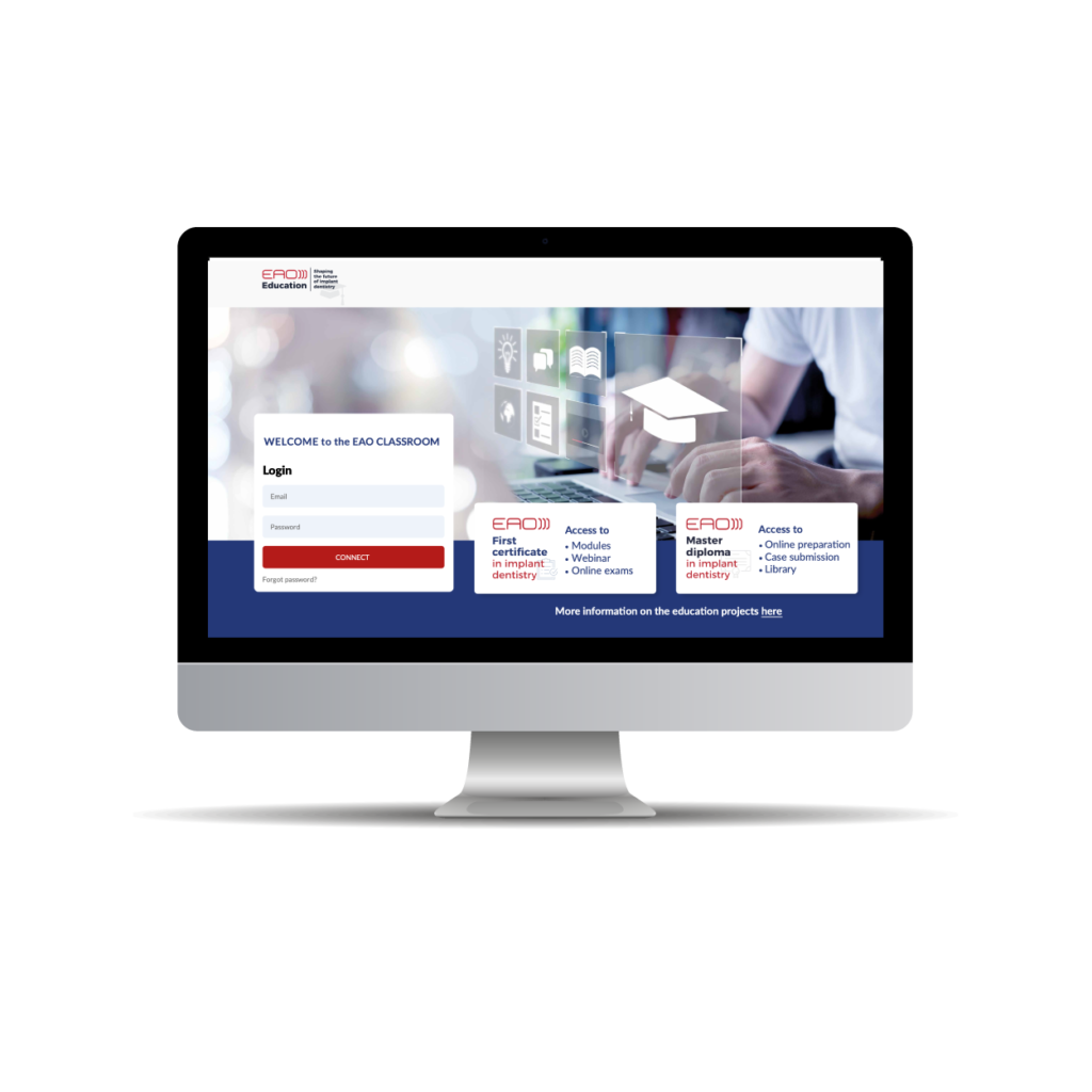 The EAO Classroom – the programme’s eLearning platform – contains all the content required for the course. This includes preparation materials for each module and debriefing materials for use after the LLE for each module. The eLearning resources in-clude a series of videos relating to completed case plans. You will also be able to view lecture materials and videos of clinical proce-dures, as well as accessing selected scientific literature.